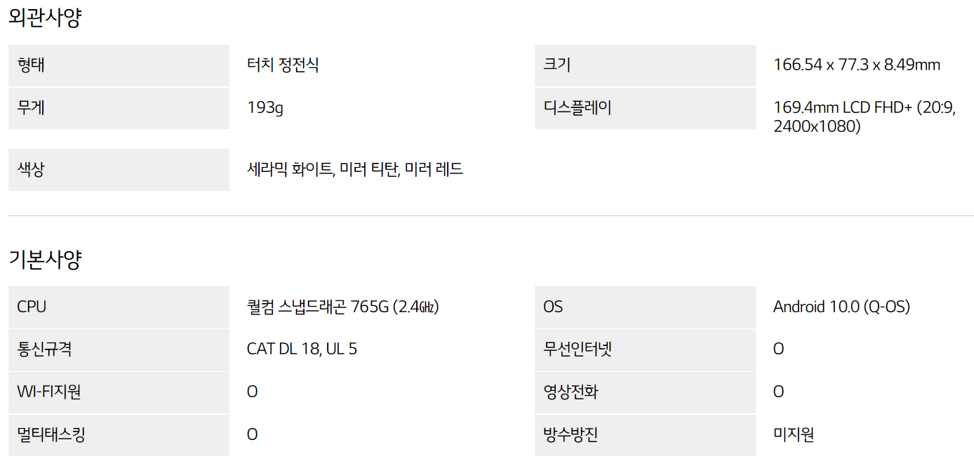 이보다 3개월 정도 먼저 나온 LG벨벳이랑 성능 차이는 크게 나지 않으면서