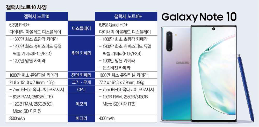 갤럭시 노트도 종류가 2가지인데 기본 모델인 노트10과 노트10 플러스 중