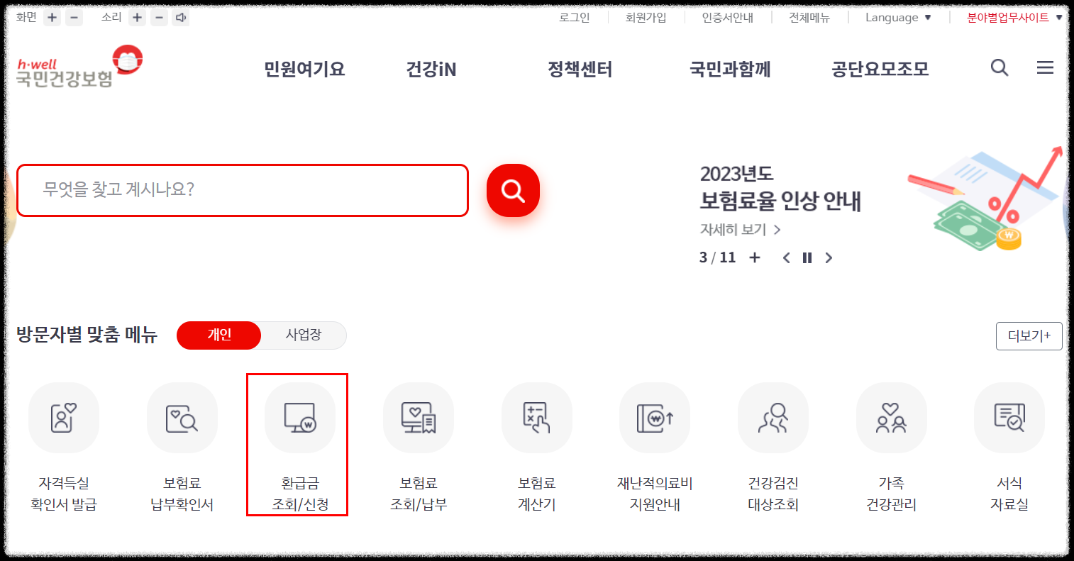 건강보험공단 홈페이지 환급금 조회 및 신청 방법