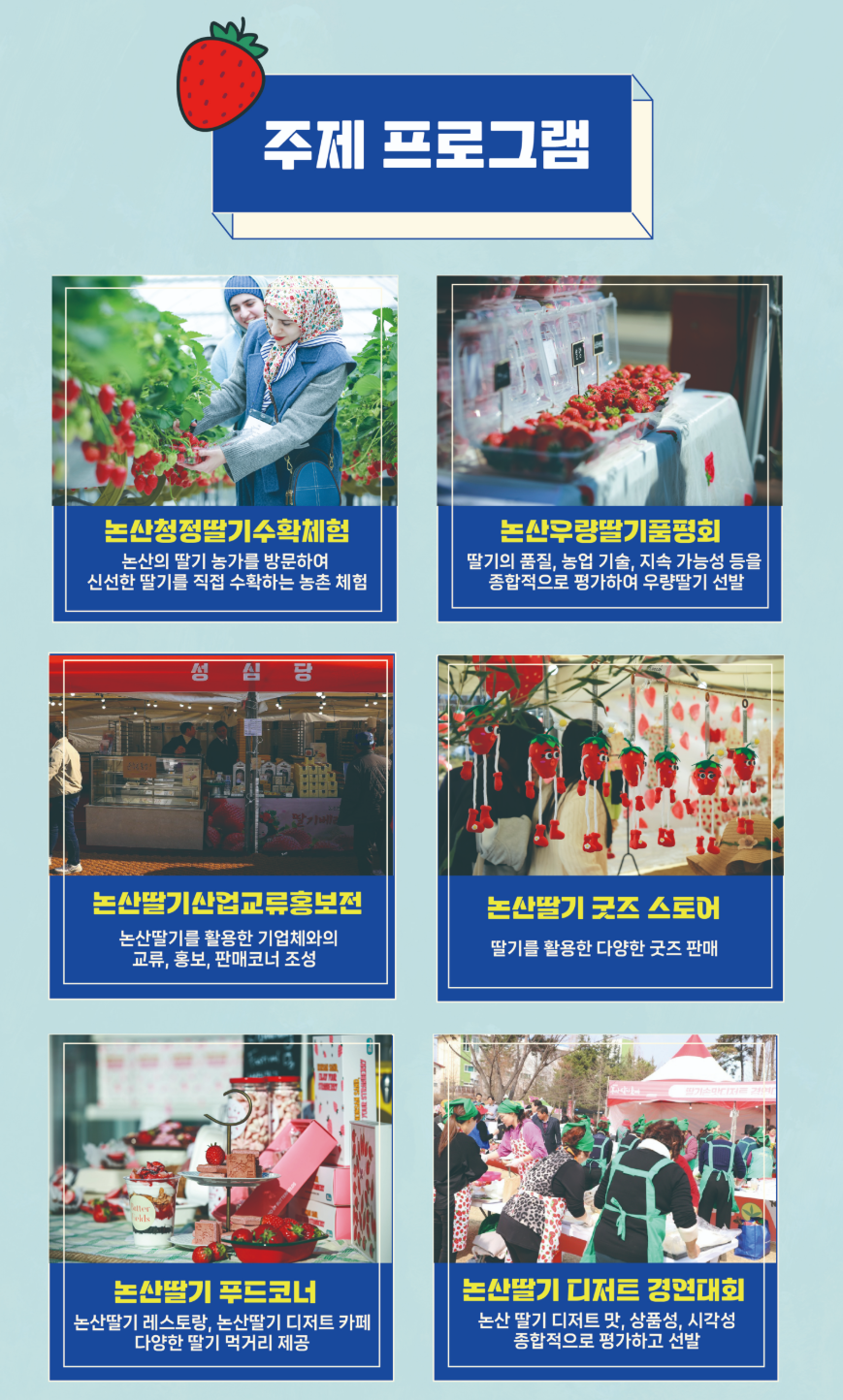 봄을 대표하는 과일인 딸기의 제철이 다가왔습니다. 전국에서 딸기 하면 가장 유명한 산지 중 하나인 논산에서 이번에 딸기축제를 진행합니다. 지금 한창 행사 중인데요, 오늘은 이 딸기 축제에 대해 알아보는 시간을 가져 보겠습니다.