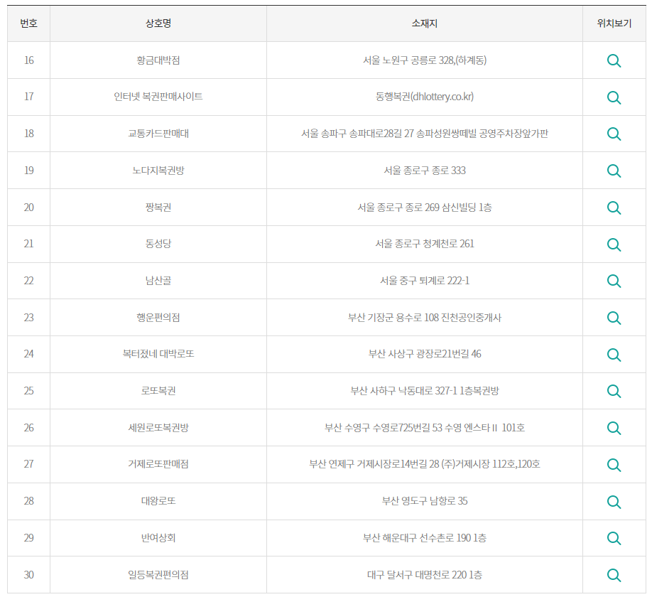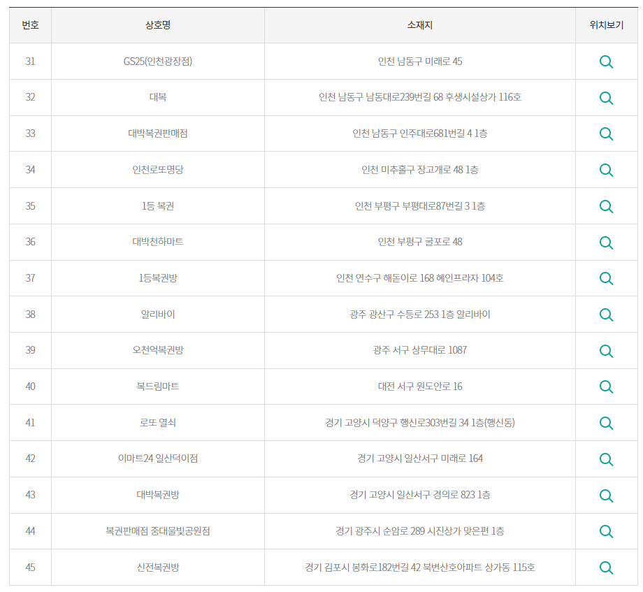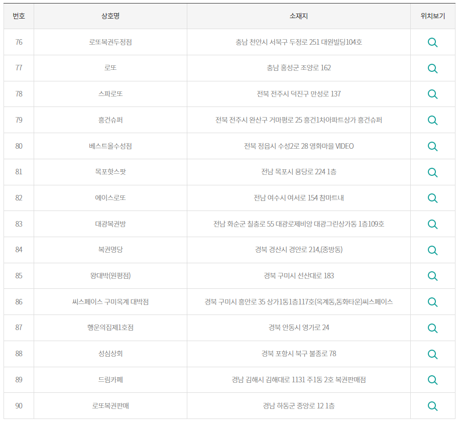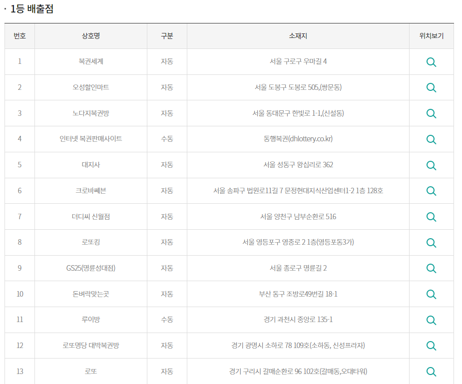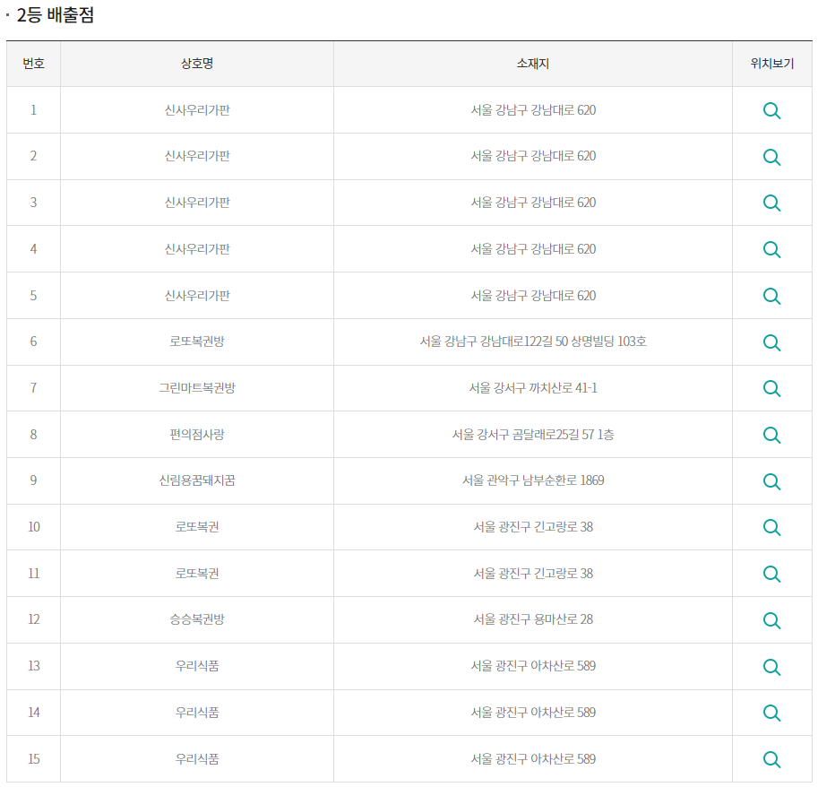 1등과 2등 당첨은 어느지역 어느 판매점에서 나왔는지