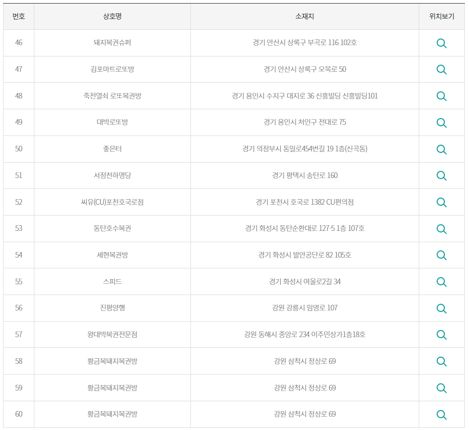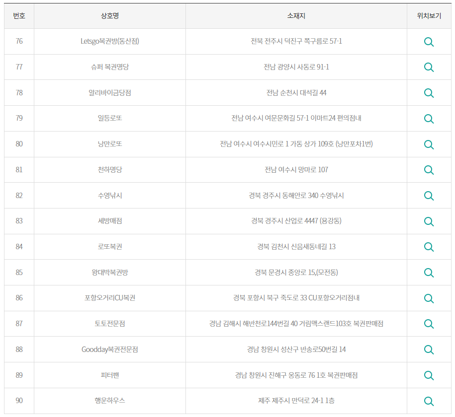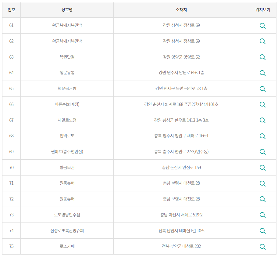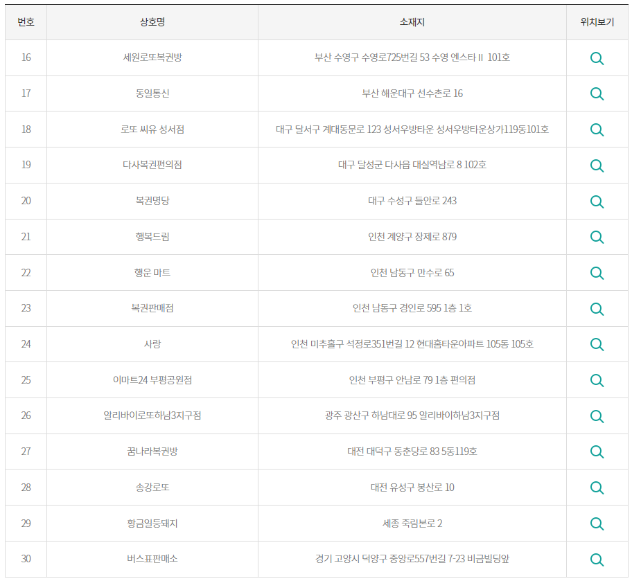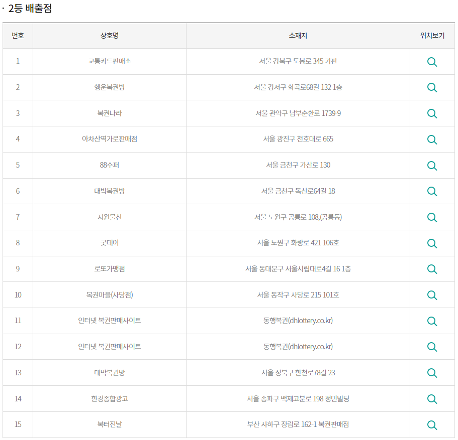 다음은 1등 및 2등 당첨 판매점은 어디로 나왔는지 보겠습니다.