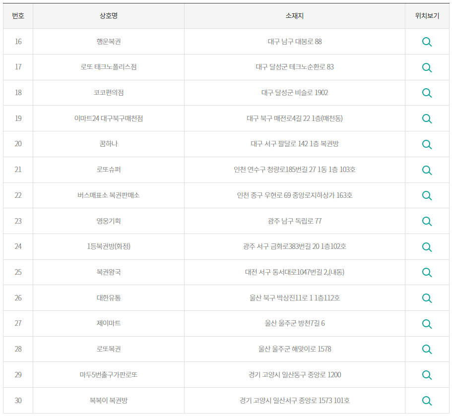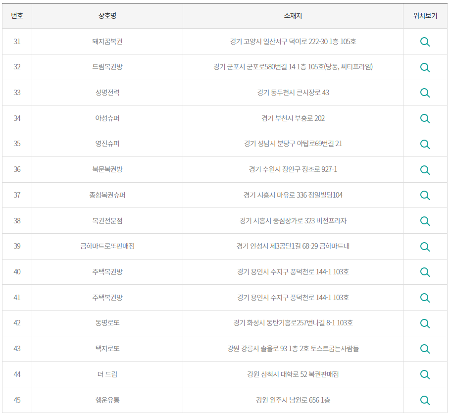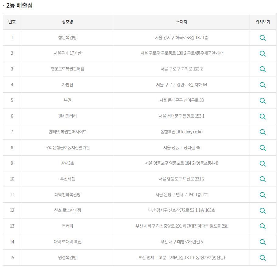 2등 당첨이 나온 판매점은 어느 곳들 인지 한번 보겠습니다.