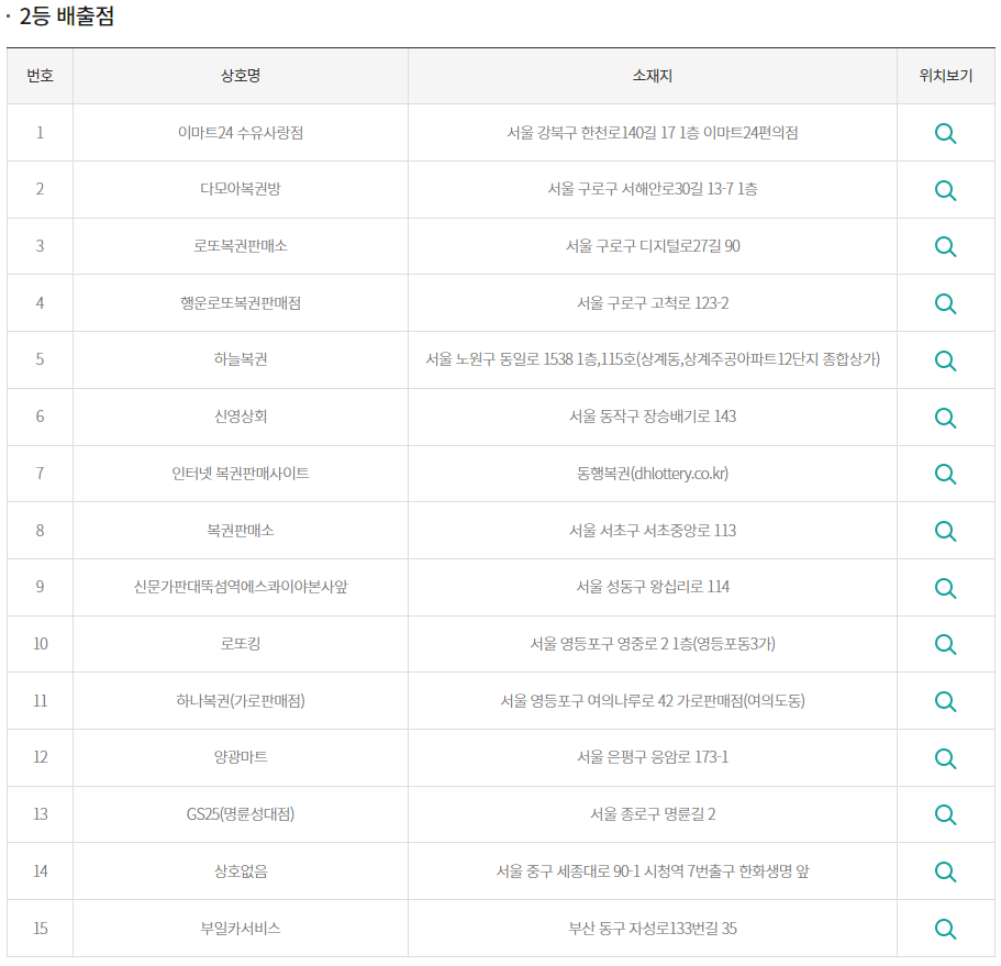 2등 당첨지역 및 판매점