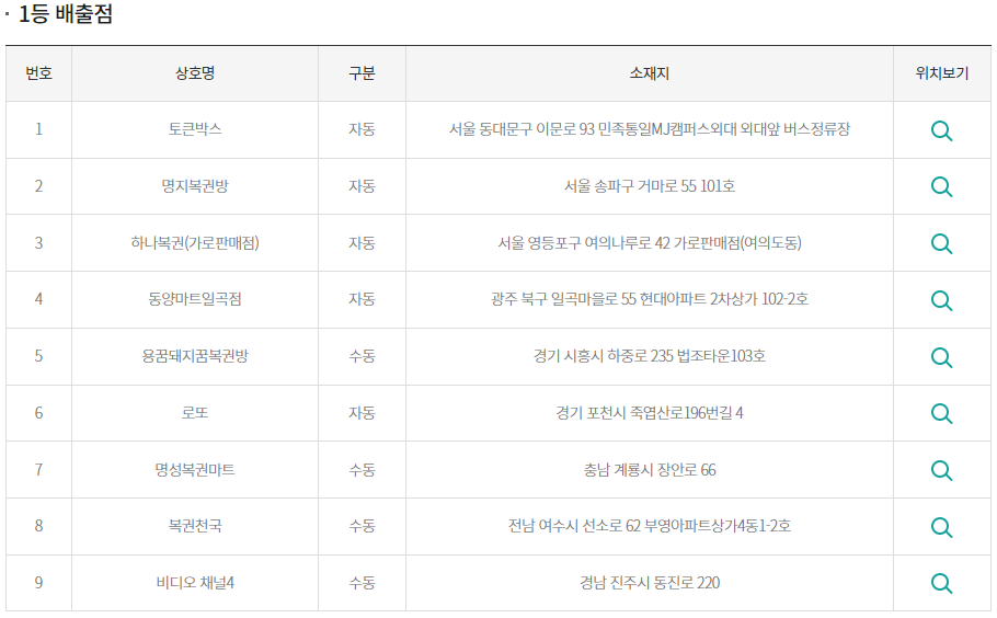그다음 당첨지역은 어느 곳에서 나왔는지 이어서 보겠습니다.