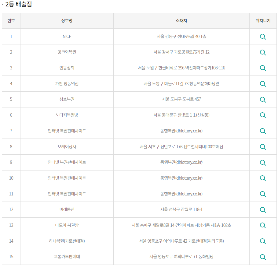 그럼 다음은 1등 당첨이 나온 판매점과 2등 당첨이 나온 판매점을 보겠습니다.