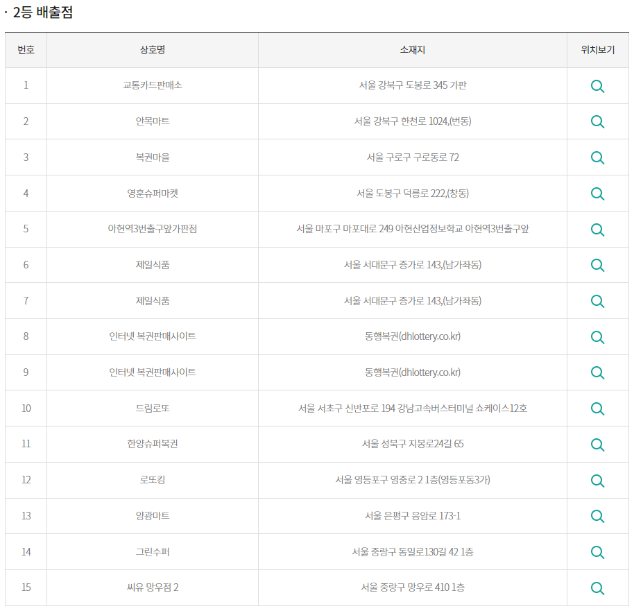 2등 당첨 판매점