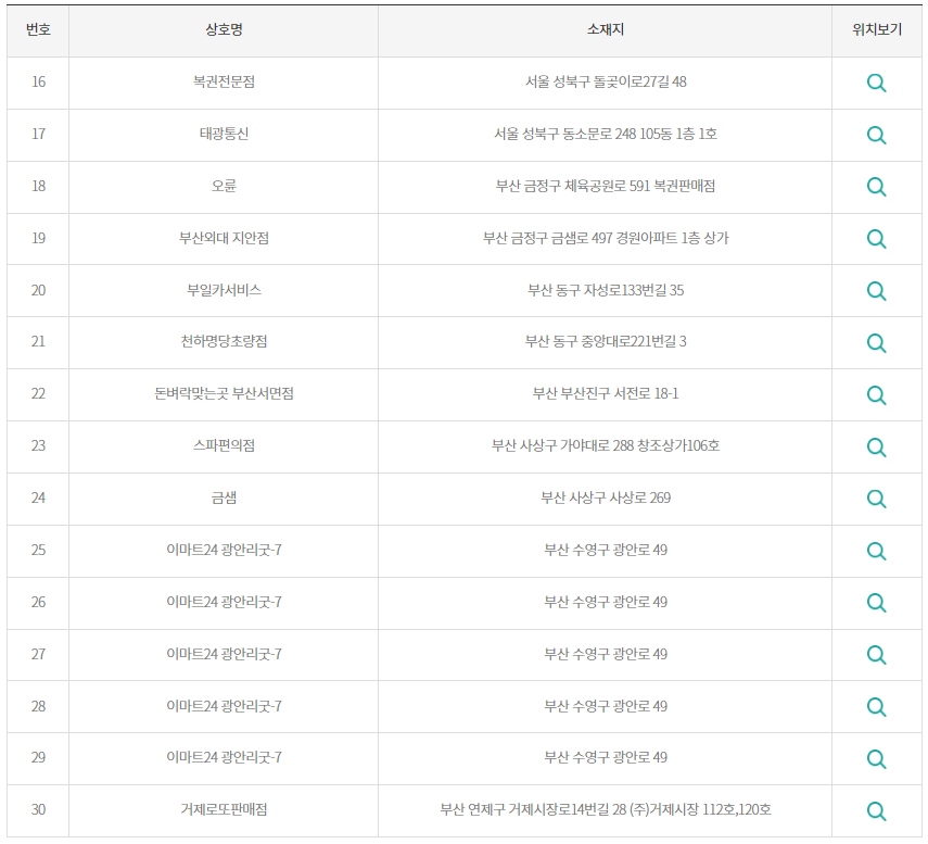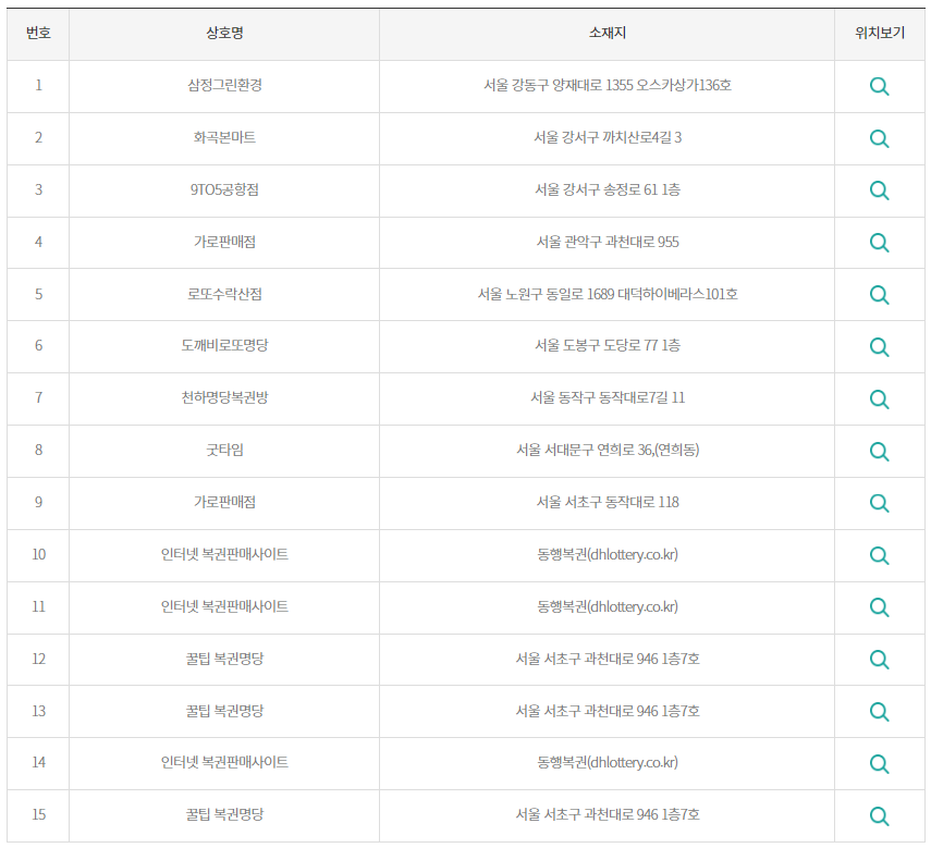 전국에서 1등 당첨이 나온 판매점 입니다.