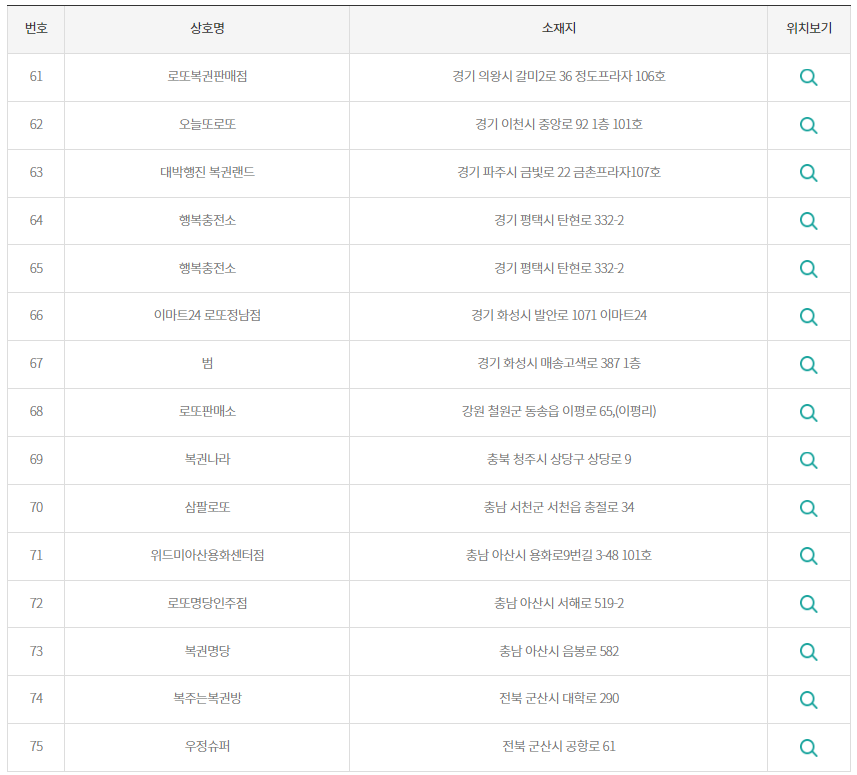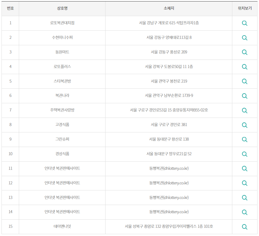 1등 당첨은 중복 당첨 없이 각 지역에서 골고루 나온 것을 볼 수 있습니다. 1등 당첨되신 분들 진심으로 축하드리겠습니다.