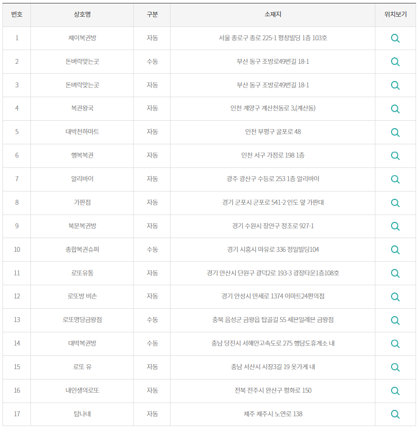 1등 당첨 총 17게임중 자동으로 당첨된 수는 13게임이며 수동으로 당첨된 수는 총 4게임 이었습니다. 이중 수동으로 당첨되신 한 분이 중복 당첨인것으로 보아 한명이 1등 2장 당첨되신것으로 추측되고 있습니다.