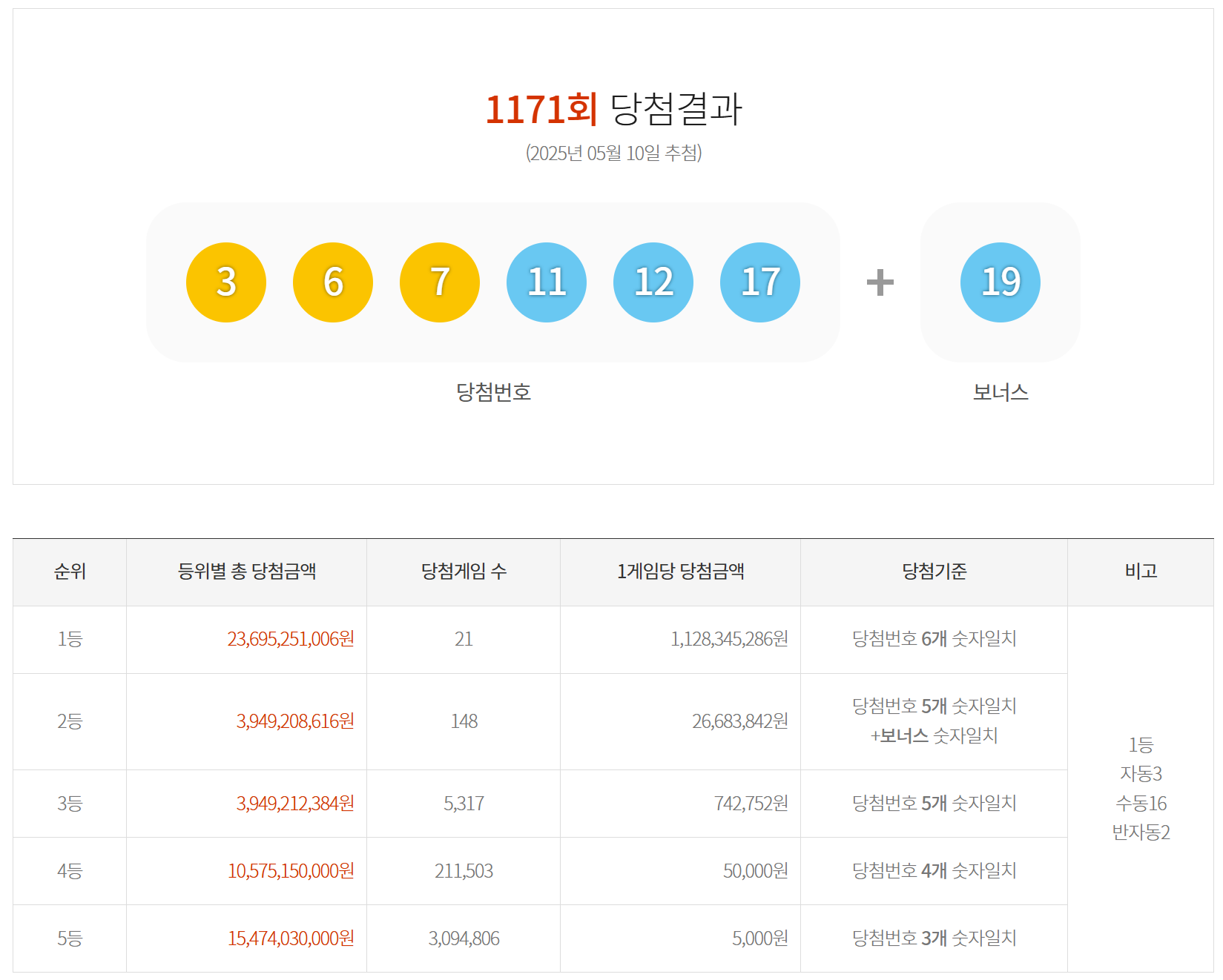 2025.05.08 - [로또] - 로또 1171회 예상번호 분석 및 흐름 알아보기