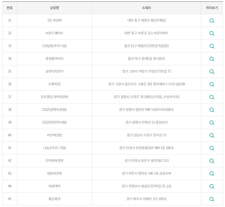 그럼 1등 당첨이 나온 지역과 판매점은 어디인지 보겠습니다.