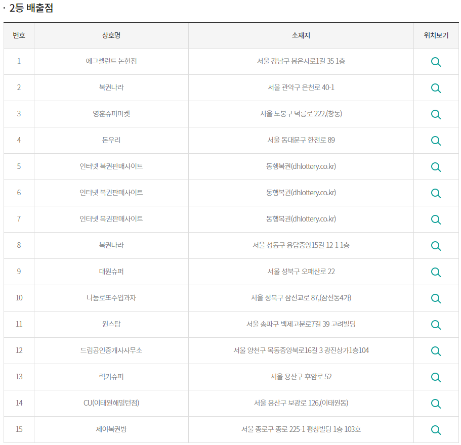 당첨 판매점은 어느 지역에 어느 곳에서 나왔는지 한번 살펴보겠습니다.