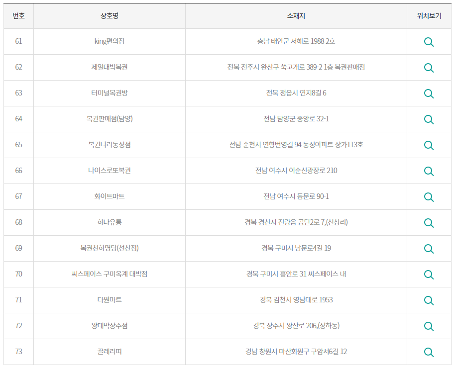 당첨 판매점은 어느 지역에 어느 곳에서 나왔는지 한번 살펴보겠습니다.
