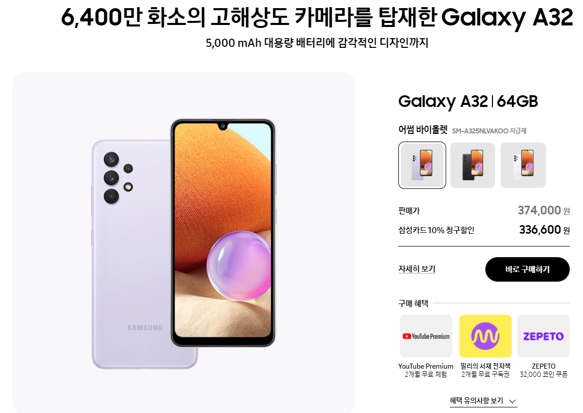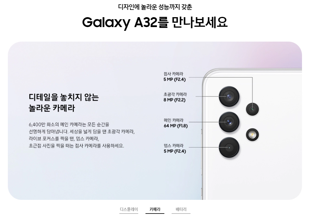 오늘은 이번에 갓 출시한 보급형의 대표 모델 갤럭시 A32 모델을 소개해 드릴까 합니다.