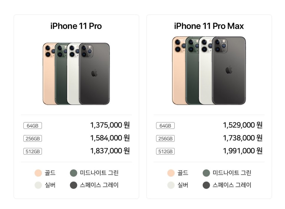 그 다음 아이폰 11 PRO / PRO Max 입니다.