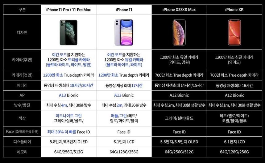 이번 아이폰 11모델은 기존에 없던 퍼플색이랑 그린색이 추가가 되었는데요