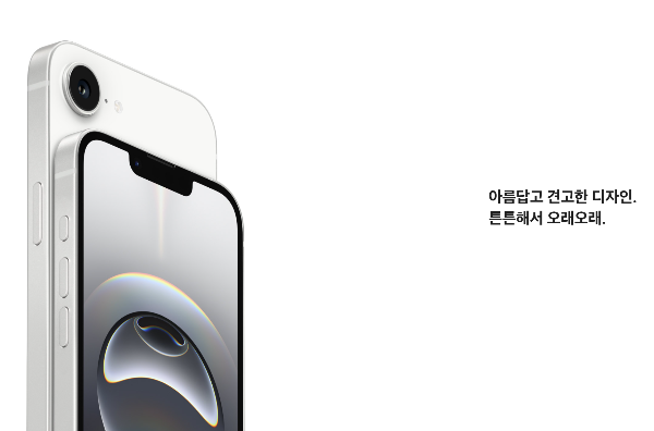 아이폰 16e는 6.1인치 Super Retina XDR OLED 디스플레이를 탑재하여 선명한 색감과 뛰어난 해상도를 제공합니다. 디자인 면에서는 홈 버튼이 제거되고 전면 풀스크린 디자인이 적용되어 현대적인 느낌을 줍니다. 페이스 ID를 지원하며, 블랙과 화이트 두 가지 색상 옵션이 있습니다.