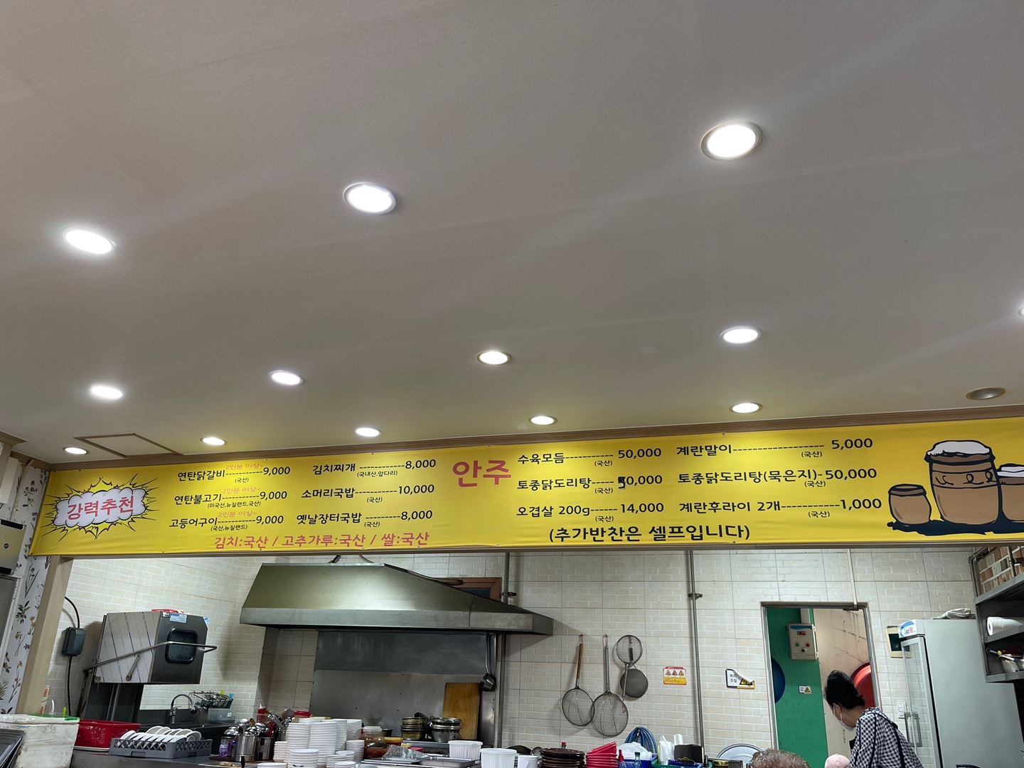 밖에 간판에는 김치찌개랑 연탄불고기 등