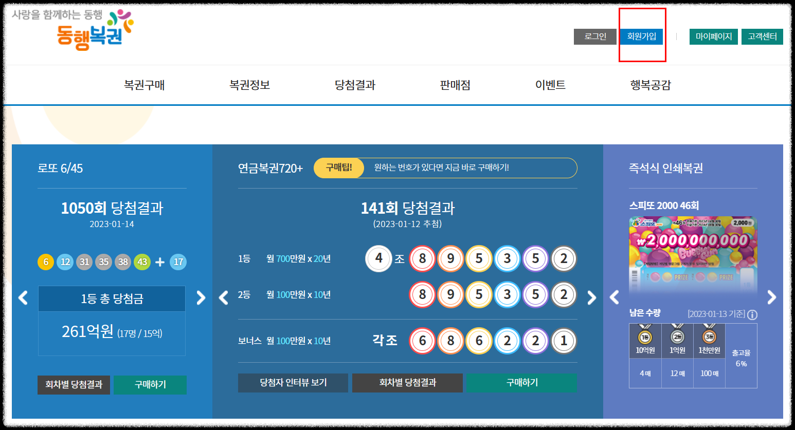매주 로또 추첨 후에 당첨이 나오는 판매점을 보다 보면 물론 오프라인 매장으로 로또 당첨 판매점이 많이 나오기는 합니다. 하지만 못지않게 1등 및 2등 당첨이 종종 나오는 곳이 바로 동행복권 온라인 홈페이지인데 오늘은 인터넷으로 로또 구매하는 방법을 한번 간략하게 알아보도록 하겠습니다.
