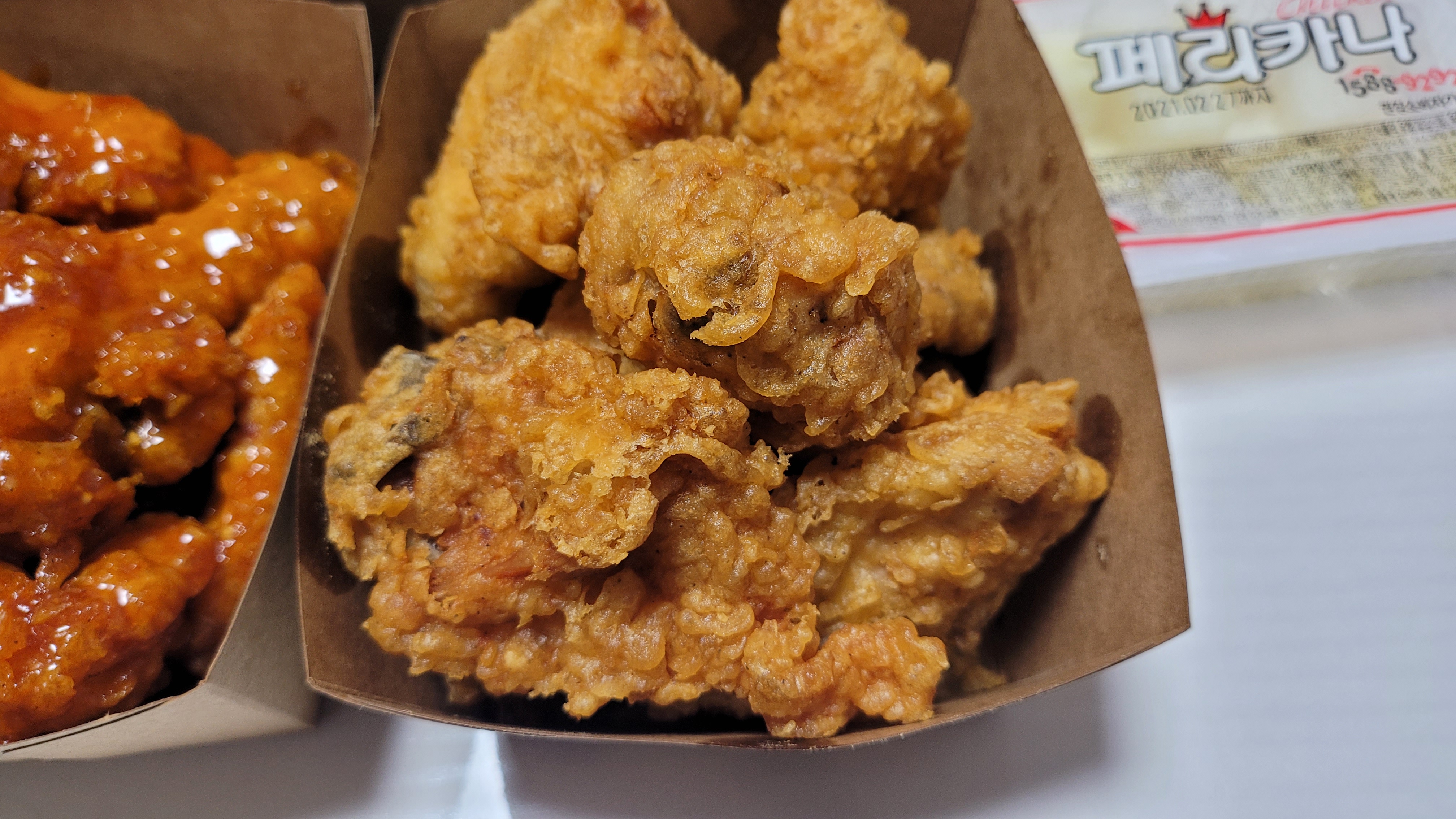 종이백 안에 치킨이 담겨있는 상자도 두껍고 튼튼해서 저는 페리카나가 포장용기에 돈을 많이 썼구나 라고도