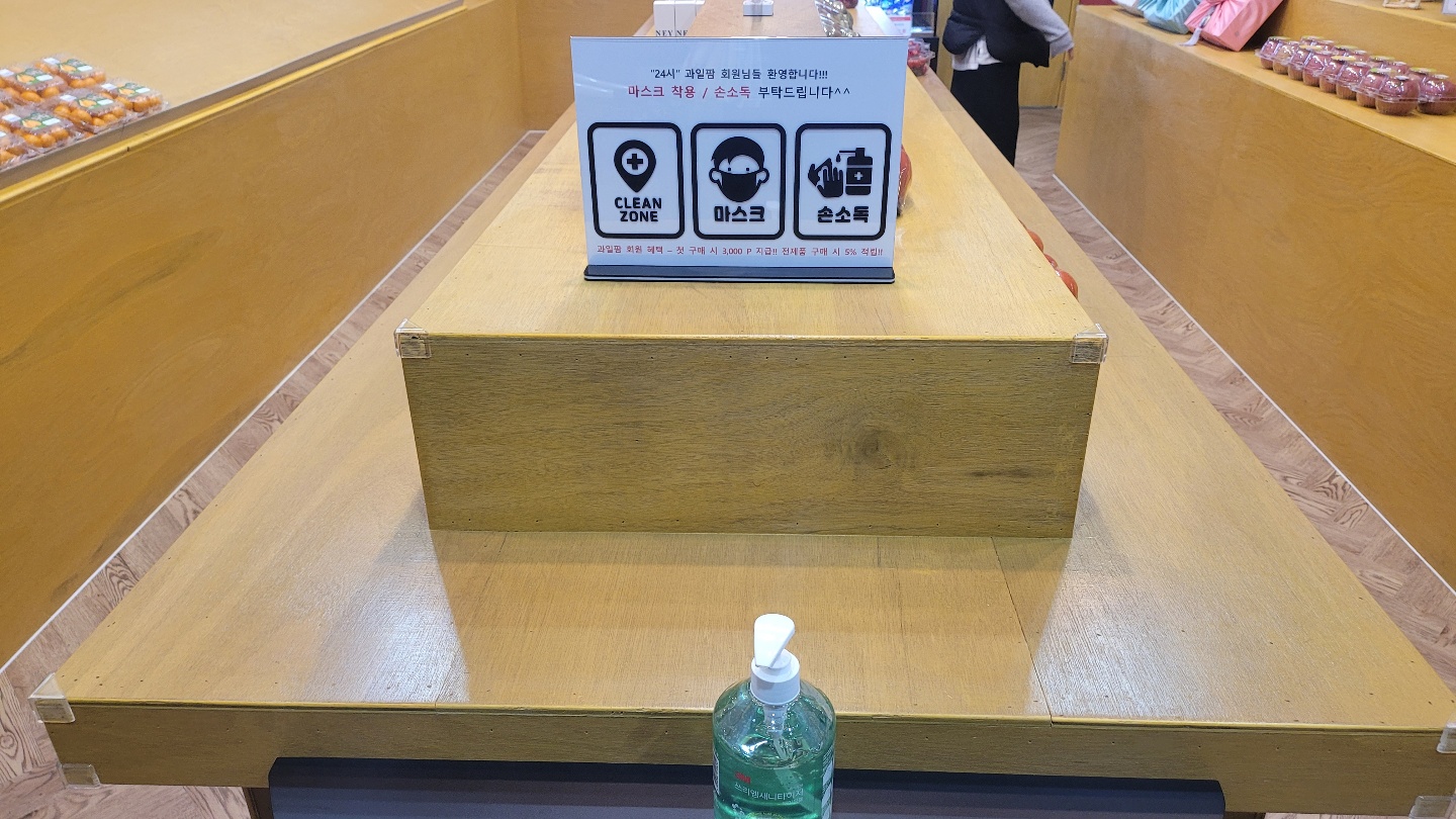 우선 매장을 들어가면 손 소독할 수 있는 곳과